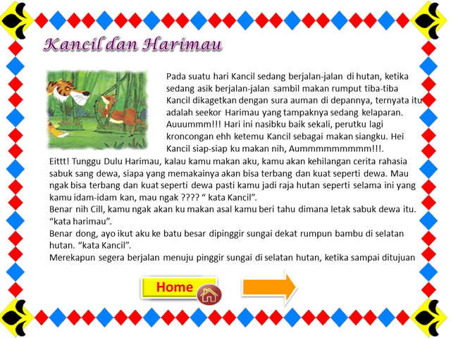 Bahasa Melayu Cerita Pendek - Simpulan bahasa adalah bentuk peribahasa yang paling mudah yang terdiri daripada dua patah kata yang membawa maksud yang tepat dan padat.. Simpulan bahasa adalah bentuk peribahasa yang paling mudah yang terdiri daripada dua patah kata yang membawa maksud yang tepat dan padat. I found this site that seems great. فوقف برهة ينظر ألى الطيور نظرة الكتب. Sehingga, dongeng dapat dijadikan sebagai bahan bacaan untuk mengantarkan si anak tidur. Mereka ialah seekor arnab dan seekor tupai.